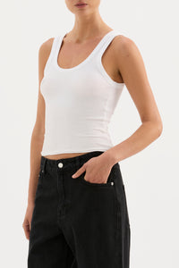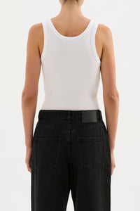 The Organic Rib Singlet by Nude Lucy is a key piece to add to your basics wardrobe range. Made from high stretch quality fabric which allows for a figure hugging shape whilst still being breathable and lightweight. The silhouette is a classic slim fitting tank finishing on the hips. Features include thick straps and low scoop neckline.
