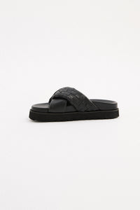 The Oscar Slide is made from premium 100% sheep leather upper, grounded on a solid rubber base. Features include twisted straps with woven detail and a platform sole with arched shaping for extra support and comfort.