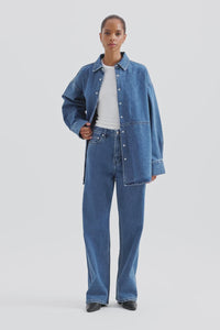 The Otis Organic Denim Jacket is made from 12 oz 100% organic cotton denim, stone washed to an authentic stone wash blue. The silhouette is oversized finishing below the hips. Features include waist seam detail and metal press studs through centre and sleeve cuff.