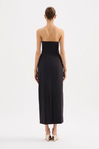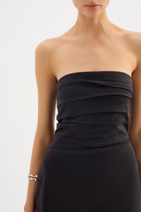 The Raina Strapless Dress is made from a from a premium cotton blend fabrication with a dry, textured hand feel. The silhouette is sculpted to the body with a strapless irregular pleated bodice and classic pencil skirt finishing above the ankles. Features include asymmetric tuck detailing, back skirt vent and hidden zipper.