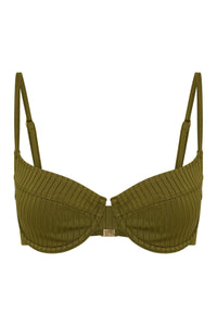 The Rib Bralette is made from a premium recycled stretch fabrication with a soft hand feel and wide rib. The top has a soft paneled cup with an underwire bust. Features include thin adjustable straps and branded Nude Lucy clasp at centre back. This top is fully lined.