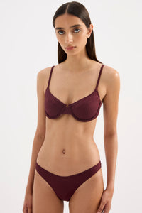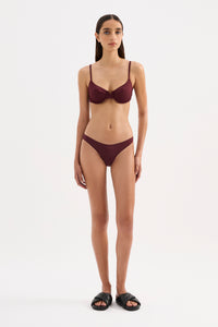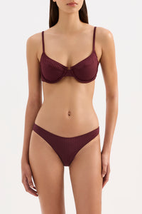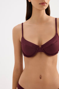 The Rib Bralette is made from a premium recycled stretch fabrication with a soft hand feel and wide rib. The top has a soft paneled cup with an underwire bust. Features include thin adjustable straps and branded Nude Lucy clasp at centre back. This top is fully lined.
