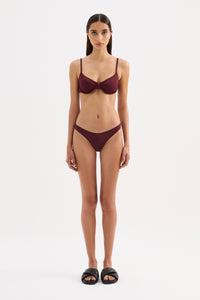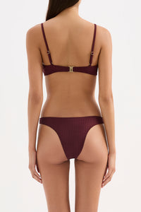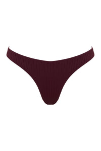 The Rib Cheeky Brief is made from a premium recycled stretch fabrication with a soft hand feel and wide rib. The bottom has a low rise and high leg that can be pulled up or down. This bottom is fully lined with cheeky back coverage.