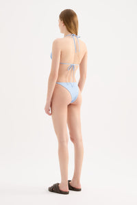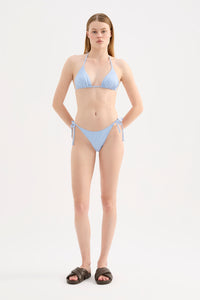 The Rib String Bikini Brief is made from a premium recycled stretch fabrication with a soft hand feel and wide rib finish. The bottom is fully lined and features a classic cut with adjustable tie sides. Moderate back coverage.