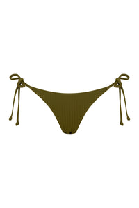 The Rib String Bikini Brief is made from a premium recycled stretch fabrication with a soft hand feel and wide rib finish. The bottom is fully lined and features a classic cut with adjustable tie sides. Moderate back coverage.