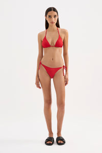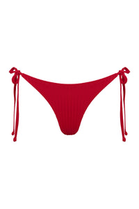 The Rib String Bikini Brief is made from a premium recycled stretch fabrication with a soft hand feel and wide rib finish. The bottom is fully lined and features a classic cut with adjustable tie sides. Moderate back coverage.
