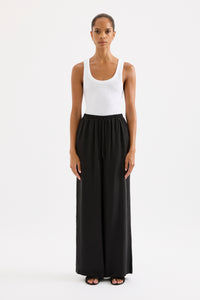 The Rika Cupro Pant is made from our signature cupro fabrication with a smooth suede hand feel. The silhouette is a relaxed wide leg, full length pant. Features include a an elasticated waistband with a drawstring tie and side seam pockets.