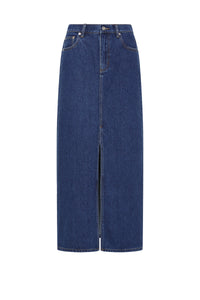 The Organic Denim Maxi Skirt is made from our 12oz 100% organic cotton denim with a Force Blue stone wash. The silhouette is mid to high rise with a straight shape and finishes above the ankle. Features include branded shank button, rivets & Jacron Back patch. Fits true to size, size up for a more relaxed fit.