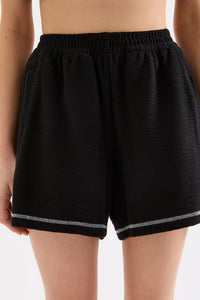 The Sutton Short is made from a textured cotton fabrication that is soft on the skin. The silhouette is a clean casual fit with a wide leg opening. Features include an elasticated waistband, side seam pockets and contrast stitching detail.