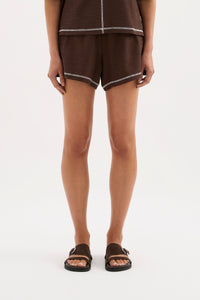 The Sutton Short is made from a textured cotton fabrication that is soft on the skin. The silhouette is a clean casual fit with a wide leg opening. Features include an elasticated waistband, side seam pockets and contrast stitching detail.