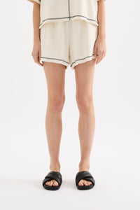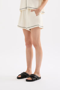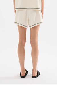 The Sutton Short is made from a textured cotton fabrication that is soft on the skin. The silhouette is a clean casual fit with a wide leg opening. Features include an elasticated waistband, side seam pockets and contrast stitching detail.