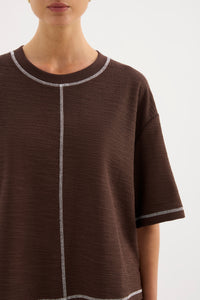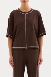 The Sutton Tee is made from a textured cotton/linen blend fabric that is soft on the skin. The silhouette is a boxy fit finishing at the hip with short wide sleeves. Features include a crew neckline and stepped hem with side slits.