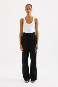 The Taylor Knit Pant is made from a midweight yarn which is super soft and has a subtle fluffy texture. The silhouette is a high rise, full length pant with a straight leg. Features include a soft rib elasticated waistband.