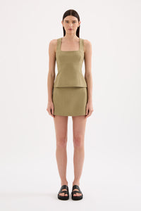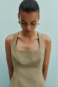 The Thea Top is crafted with a mid weight tailoring fabric and has a smooth, structured hand feel. Designed with a square neckline and fitted bust, this top features a high back with invisible zipper, shaping through body and finishes hip length.