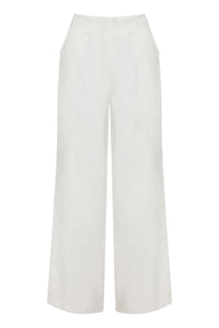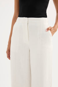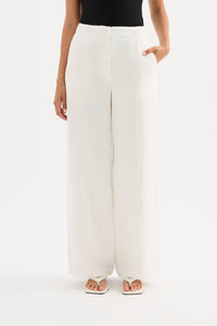 The Theo Linen Pant is made from a premium linen which has been washed for a smooth, soft hand feel. The silhouette is a classic tailored fit with a high waist, wide legs and length finishing full length. Features include a functioning fly front and side seam pockets.