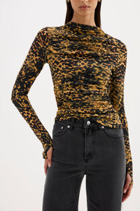 The Tora Mesh LS Top is designed in our exclusive Tora print from a stretch jersey fabrication which has a dry, lightweight hand feel. This long sleeve top has a figure hugging silhouette and features a raised neckline, draping through body and thumb holes. This top is fully lined.
