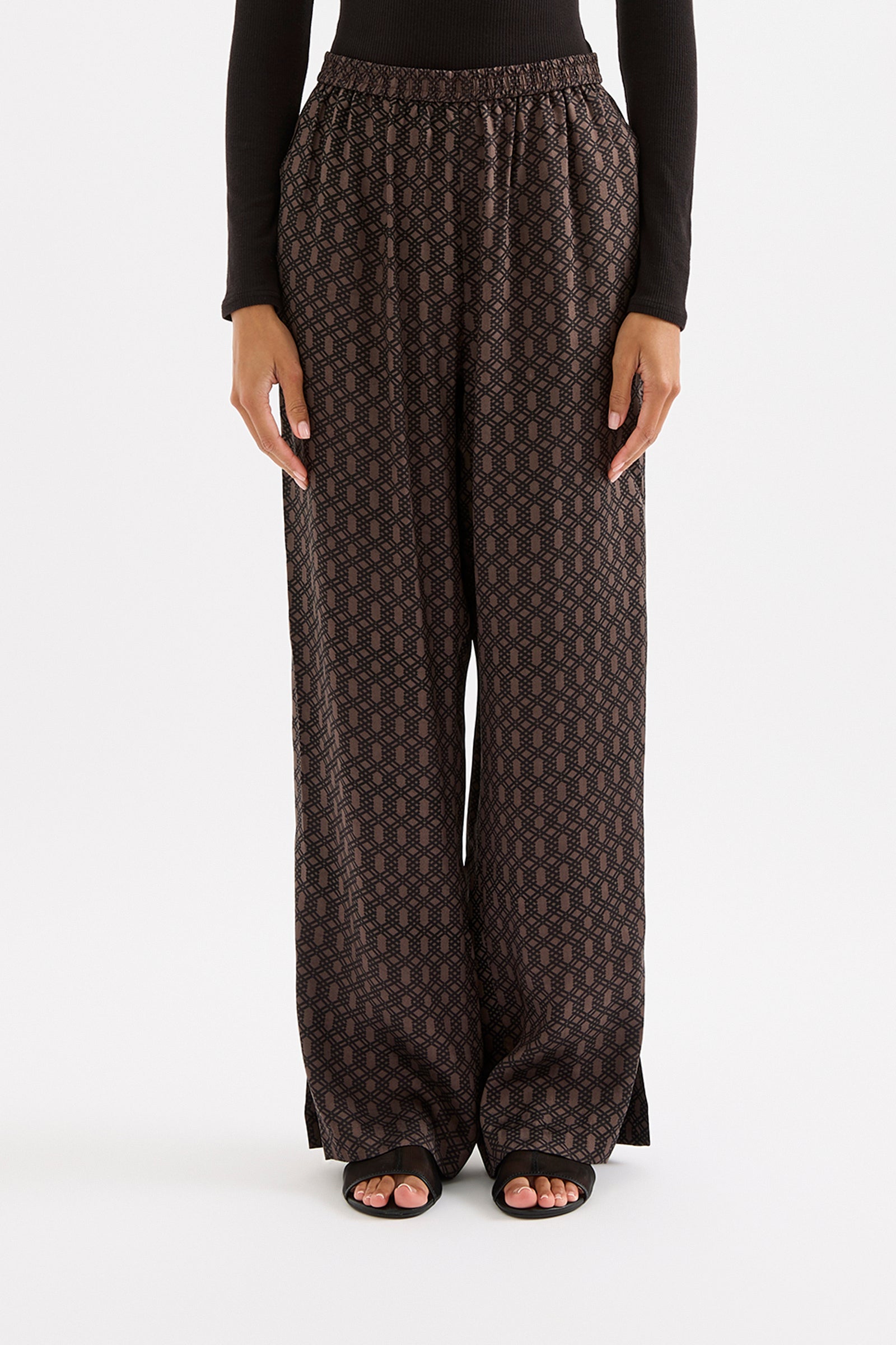 The Yasmeen Pant is made from a lyocell blend fabrication in our exclusive Yasmeen print. The silhouette is a relaxed wide leg, full length pant. Features include a an elasticated waistband with slits at hem and side seam pockets.