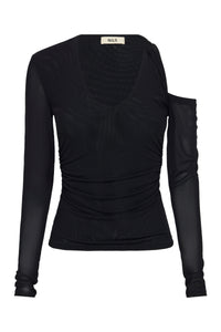 The Zayd Mesh LS Top is designed from a lightweight mesh fabrication that has soft hand feel. This long sleeve top has a fitted silhouette and full length sleeves. Features include a cut out shoulder detail, twist neckline detail and thumb holes. The front body is fully lined.